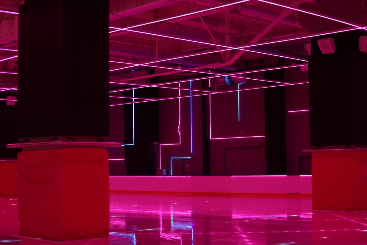 С 16 сентября в киевском ТРЦ Cosmo Multimall возобновила работу ледовая арена. Каток отличает неоновая светодиодная подсветка на стенах и потолке, и вмороженные светодиоды во льду, что дает эффект катания в неоновом сиянии.