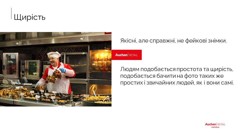 Первая задача, которую призван решать SMM: обеспечить узнаваемость бренда. В Ашан для этого используют страницы на Facebook и в Instagram, где общая цифра подписчиков превышает отметку в 4 млн (отдельно в Instagram 62 500 подписчиков). Этой целевой аудитории как существующих, так и потенциальных клиентов, адресованы сообщения об акциях, конкурсах и прочих актуальных событиях в магазинах Ашан.