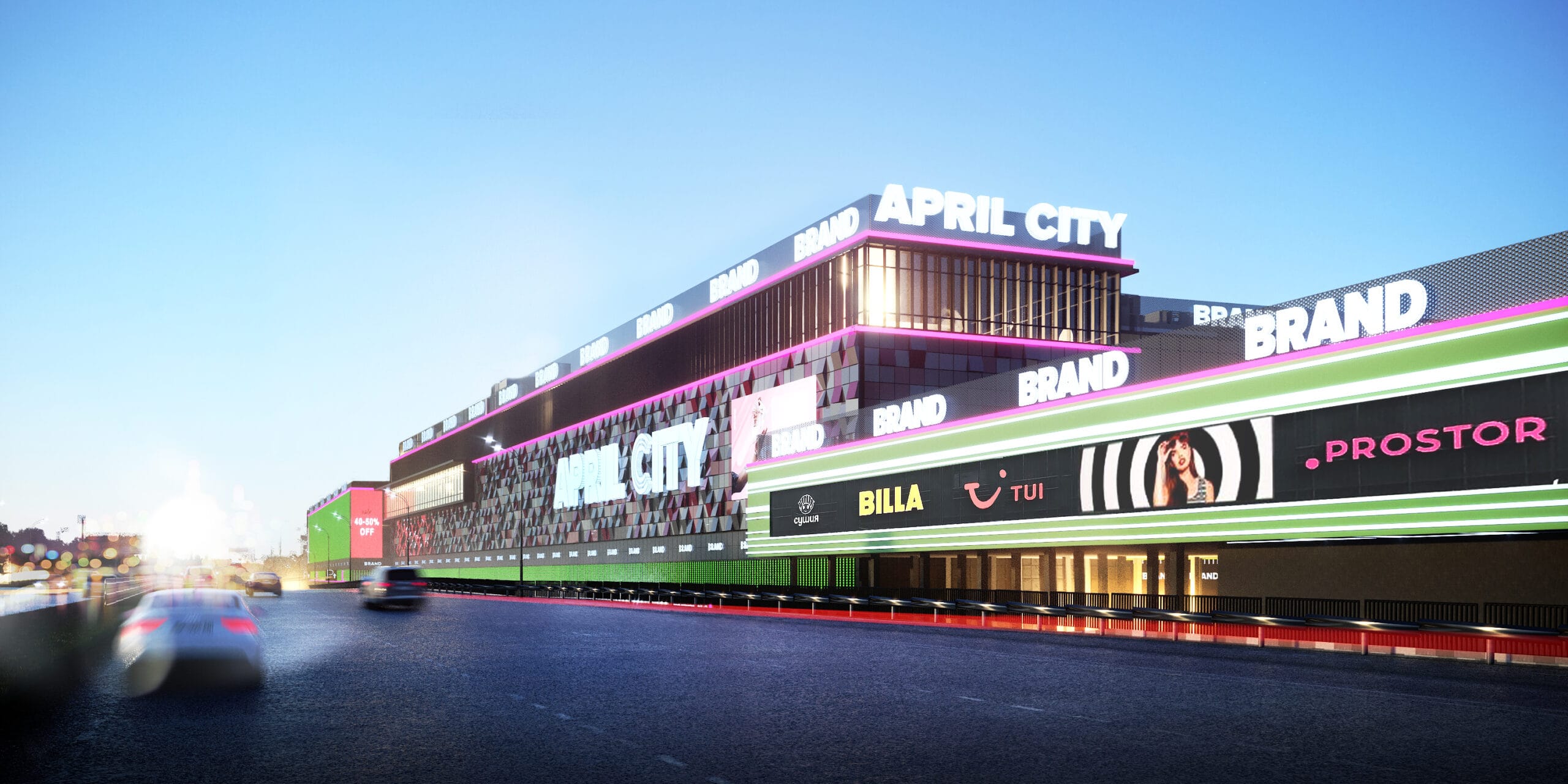 Первая фаза ТРЦ Апрель арендной площадью 5900 кв. м и общей 7100 кв. м была введена в эксплуатацию в 2014 году, а ее якорными операторами выступили ресторан MсDonald’s и супермаркет Billa. В то же время вторая очередь, общей площадью 44 257 кв. м, должна стать гораздо более масштабной, но ее открытие из года в год переносится. Якорями объекта станут продуктовый супермаркет (3900 кв. м), детский развлекательный центр (2500 кв. м) и 6-зальный кинотеатр. Еще 33 000 кв. м торговых площадей будет выделено под магазины сегментов fashion, электроники, спортивных и детских товаров. В общей сложности в будущем April City будет около 300 магазинов. Кроме того, в структуре проекта предусмотрено фитнес-центр на 1715 кв. м и ресторанная зона на 4400 кв. м. В процессе возведения ТРЦ также будет оборудована парковка на 601 паркомест. Открытие торгово-развлекательного комплекса April City запланировано на 2023 год.