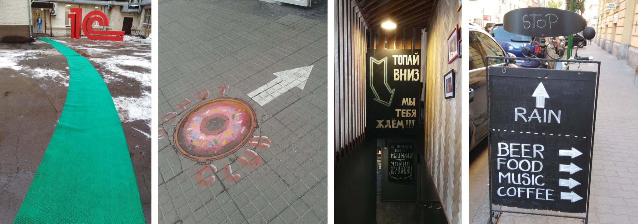 Формировать трафик можно чем угодно, что находится рядом — пни, кусты, канализационные люки. Главное правило: должно быть заметно, крупно, наглядно.
