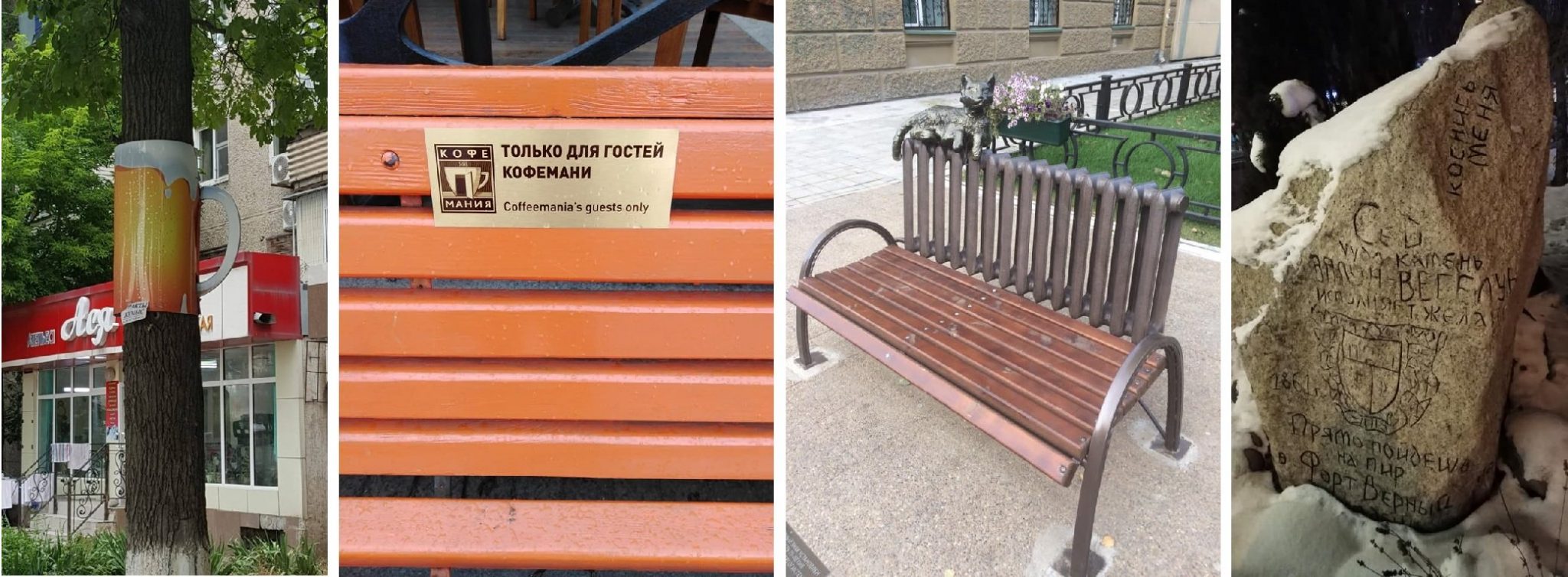 Не лишним будет создание селфи-зоны, чтобы к вам за кадром сворачивали. Сделайте отметки для лучшей точки съемки, зеркальное отражение для возможности позировать. Меняйте вижуал под сезонность, праздники, тематику событий. Можно оформить свои собственные лавочки. И дерево, и камень можно нанять на работу и привлекать трафик, запуская сарафанное радио.