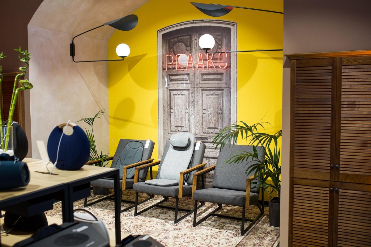 В залах нового магазина посетители могут поиграть в игры, протестировать VR-технологии, отдохнуть в релакс-пространстве с массажными креслами и уходовыми гаджетами, а также сравнить Mac на M1 со своим привычным ноутбуком.