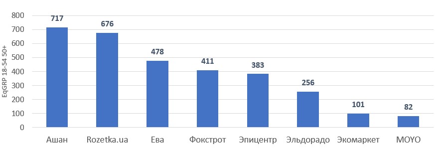 Приходится констатировать, что ритейл выбрал стратегию выжидания, и не рекламируется активно в течение карантина. И даже такой повод как Пасха не заставил сети изменить свое мнение. В последнюю неделю апреля оптимизм вернули EVA, начавшая очень активную рекламную кампанию на каналах Альянса и набравшая 343 GRPs за первые 4 дня активности, и MOYO (рекламодатель, ранее традиционно не использовавший ТВ).