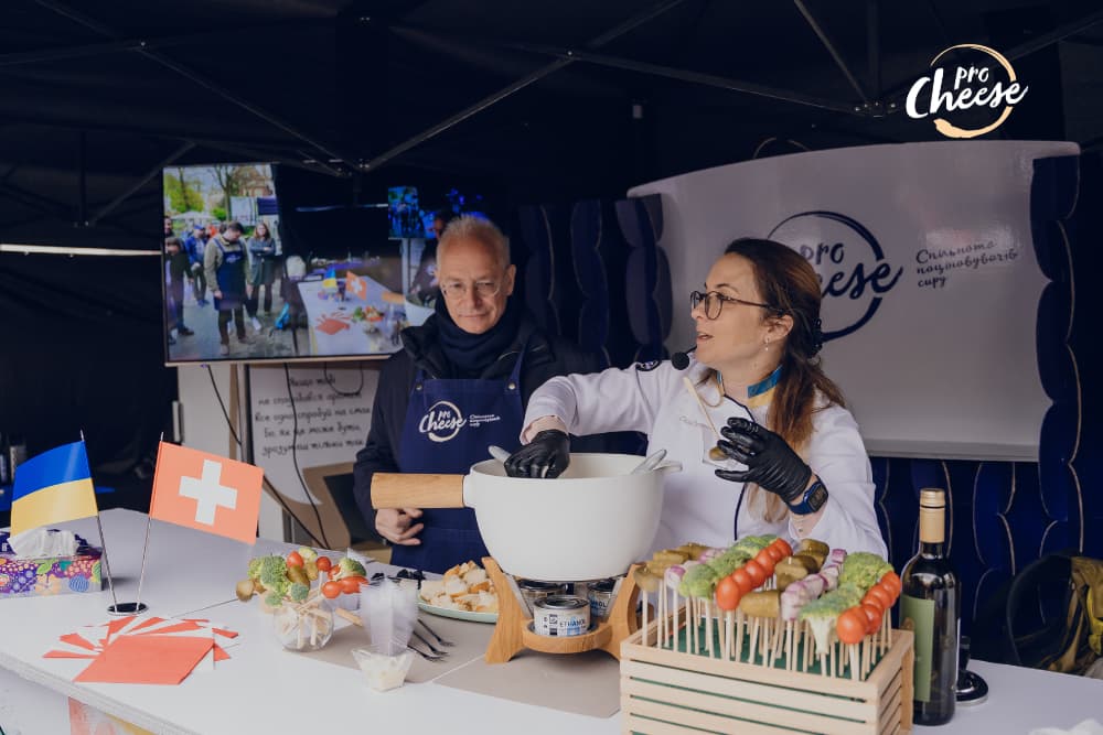 - Мастер-класс по приготовлению сырного фондю совместно с Андреасом Хубером директором программы сотрудничества посольства Швейцарии в Украине. Зрители не только узнали историю и традиции потребления этого блюда, но и много секретов о том, как сделать консистенцию идеально нежной, тягучей и достичь того же действительно швейцарского вкуса.