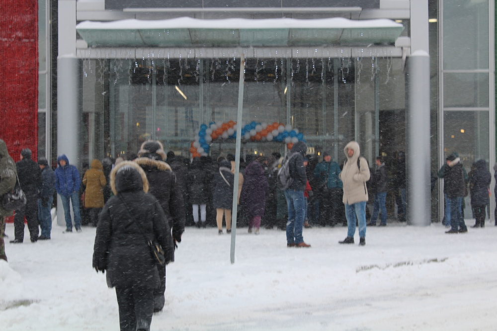 Несмотря на раннее время, на которое было назначено открытие – 8 утра –и зимнюю погоду со снегопадом, на открытие нового центра пришло немало людей. Игнорируя холод и пробираясь через сугробы, они с нетерпением ждали начала работы нового Эпицентр К.