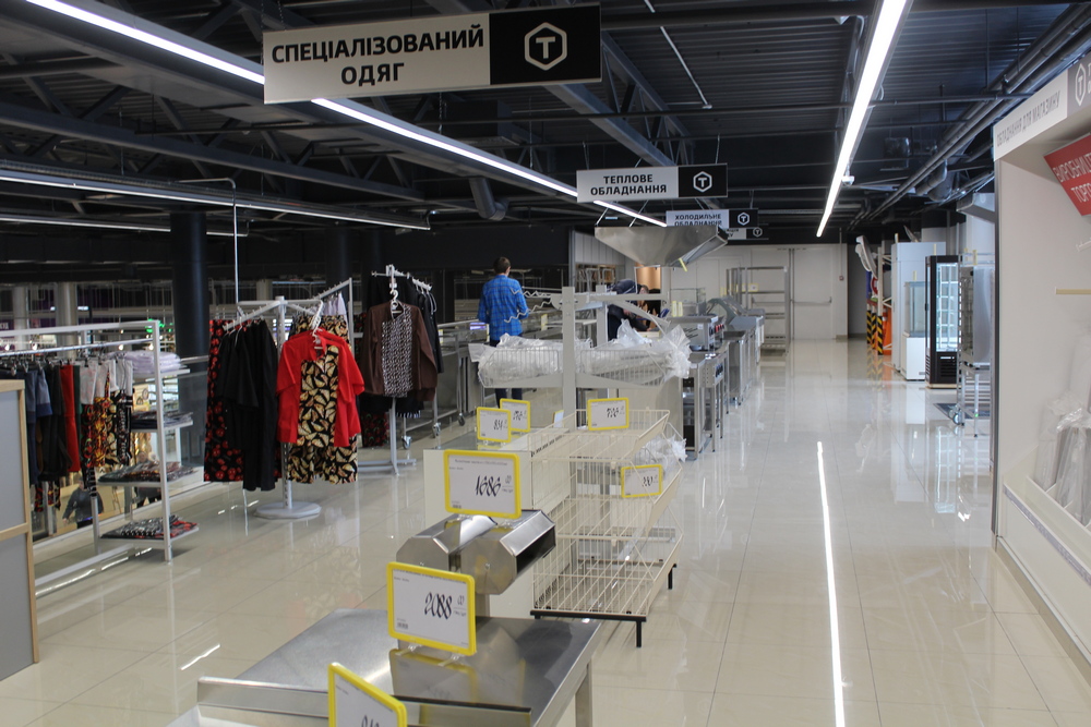 Еще ниже – уровень профессионального торгового оборудования. Что, в принципе, тоже не совсем типично для Эпицентр К: как правило, в сегменте в2в работают другие компании, а сеть предлагает товары для конечных потребителей. Но, учитывая площадь нового центра (а он, кстати, третий по этому показателю среди всех объектов компании, уступая лишь ТЦ в Киеве на улицах Полярной и улице Берковецкой), в данном случае планировщики решили выделить под эту категорию товара отдельную зону.