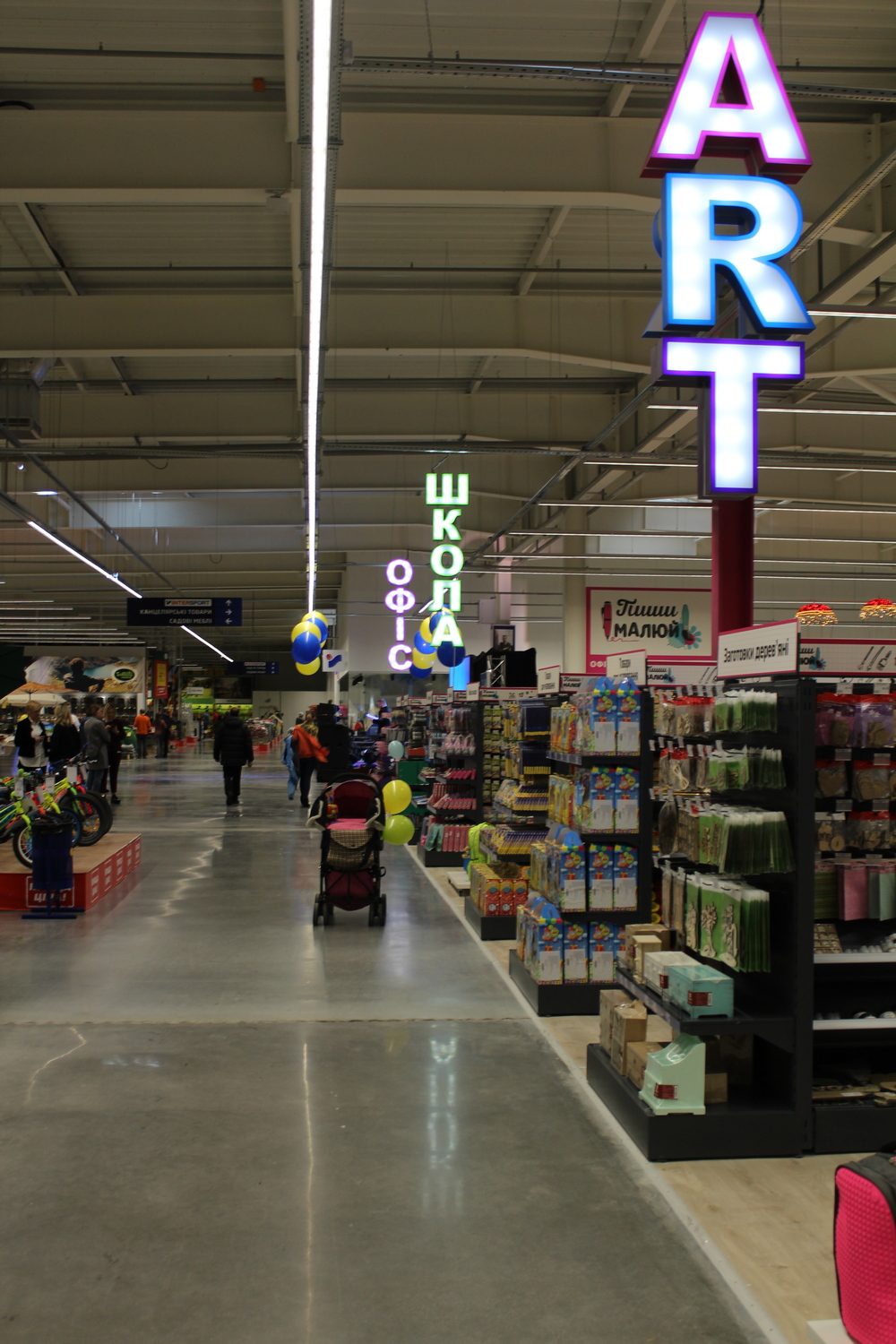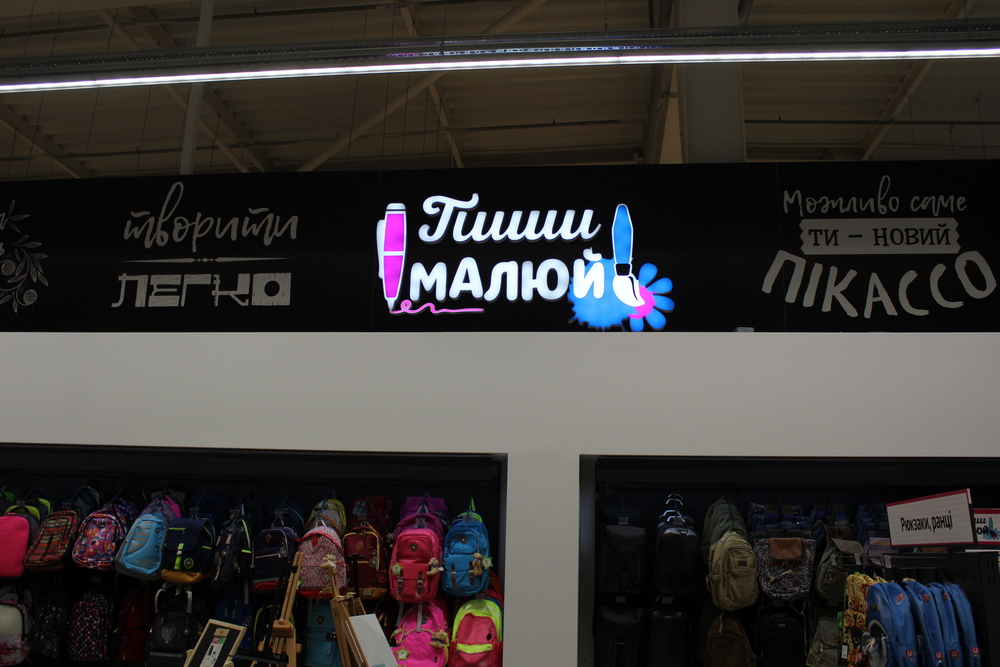 На этом же уровне располагаются еще несколько магазинов. Во-первых, магазин товаров для творчества и школы, где можно купить и краски, и полотна, и деревянные заготовки, и тетради и многое-многое другое. И если Intersport и Епік можно найти во многих ТЦ Эпицентр, то настолько большая территория творчества появилась едва ли не впервые.