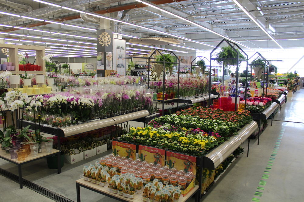 Во-вторых, рядом с ней находится самая большая в ТЦ Украины зона «сад и огород». Несколько тысяч квадратных метров заняты цветами, зеленью и всем необходимым для любителей зеленых насаждений. Причем товары представлены на любой вкус и кошелек – от самых дешевых до элитных, которые по карману только истинным (и состоятельным) ценителям. Особое внимание обращает на себя смонтированная система капельного орошения: когда она включается, громадный зал как будто затягивает туманом.