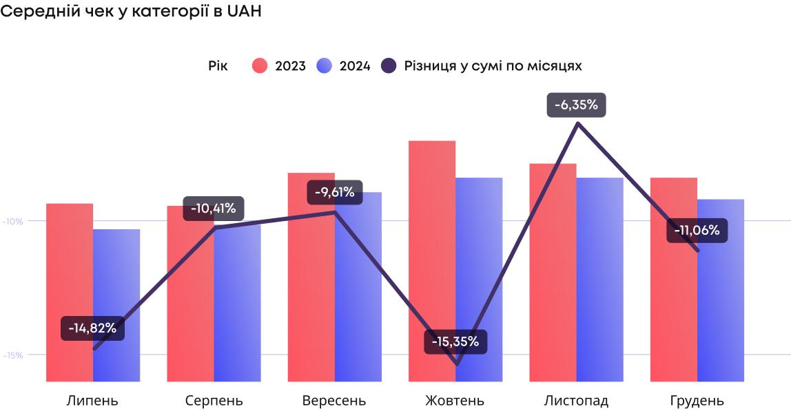 По данным команды Promodo, усредненный рост среднего чека в гривнах во всех нишах за 2024 год по сравнению с 2023-м составил 17%, а усредненный рост трафика во всех нишах за 2024 год по сравнению с 2023-м свыше 25%.