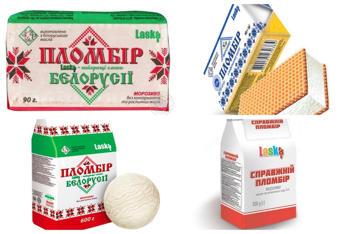 Не устоял перед соблазном расширить ассортимент за счет «пломбира белоруссии» и один из крупных игроков украинской индустрии мороженого и замороженных продуктов – компания Laska. Она была основана в 2000 году в Кропивницком (в то время – Кировоград). Ассортимент первоначально ограничивался тремя видами мороженого в вафельном стаканчике: молочное, сливочное и шоколадное. Здесь так же больше нет упоминаний на сайте о «Пломбире Белоруссии», однако на сайтах доставки заказов еще остались его описания. В то же время у компании появилась новинка: просто пломбир в желто-голубом оформлении.