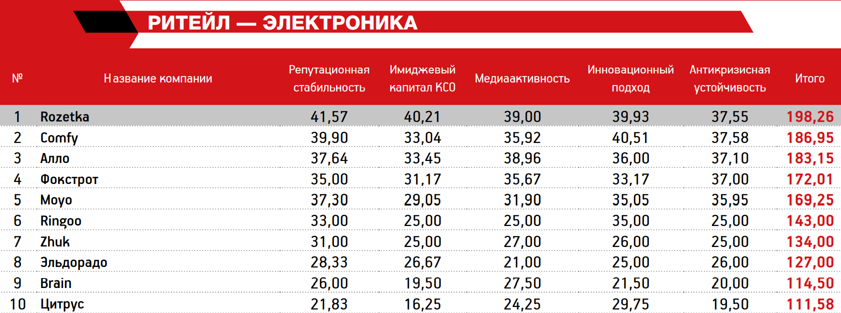 Среди лучших компаний Украины по управлению корпоративной репутацией – торговые сети АТБ, Rozetka, Comfy, Helen Marlen, Sova, EVA и другие.