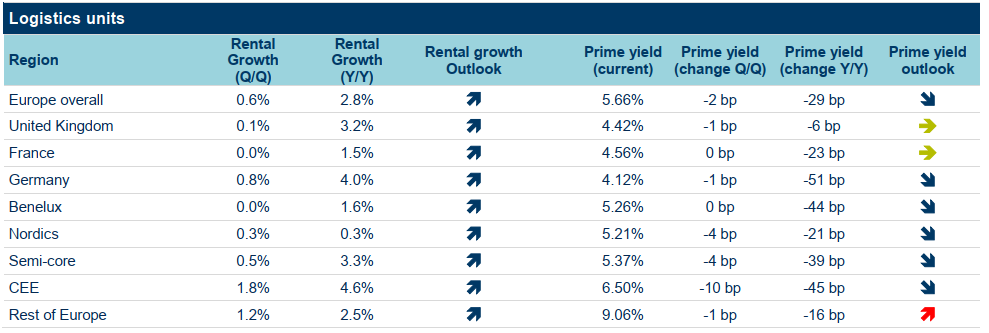 Арендные ставки на логистические помещения лучшего качества выросли на 0,6% в течение квартала и на 2,8% в годовом измерении, что является самым быстрым темпом с марта 2008 года. Основной рост происходит на рынках Центральной и Восточной Европы. В немецком городе Гамбург также зафиксирован значительный рост на уровне 3,4% за квартал, что вызвано недостаточным предложением и высоким спросом, обусловленным оптимизацией дистрибьюторских сетей.