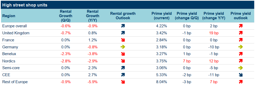 В то же время в течение квартала доходность лучших помещений стрит-ритейла не изменилась, оставаясь в среднем по Европе на уровне 4,22%,.