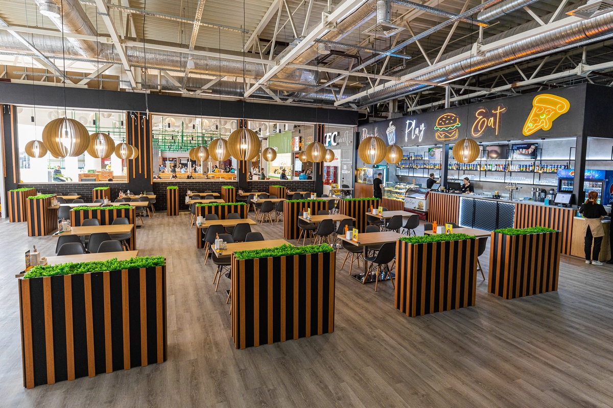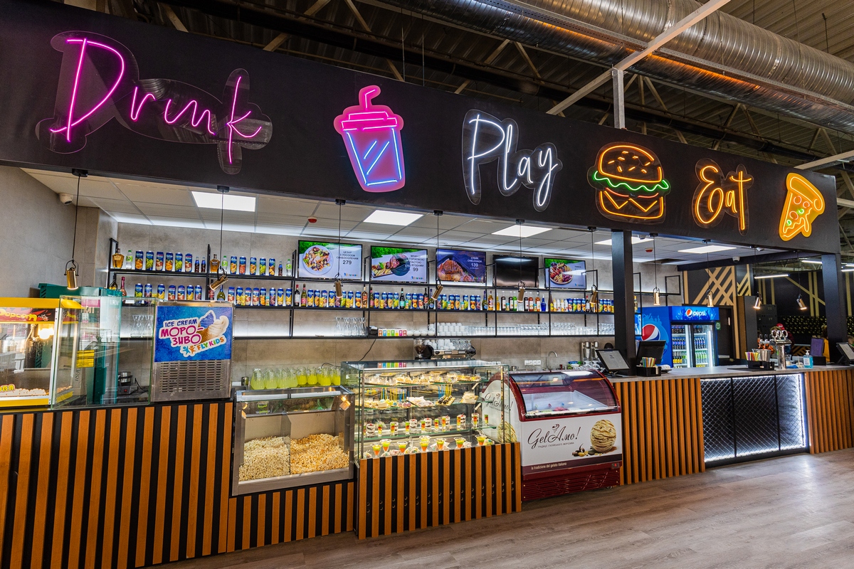 Все аттракционы расположены рядом с рестораном, обеспечивающим максимальный комфорт для родителей, пока они отдыхают. Зона ресторана и фуд-корты представлены в новом формате и доступны не только для гостей комплекса – насладиться разнообразной кухней могут и посетители ТРЦ Riviera, не заходя на игровые зоны.