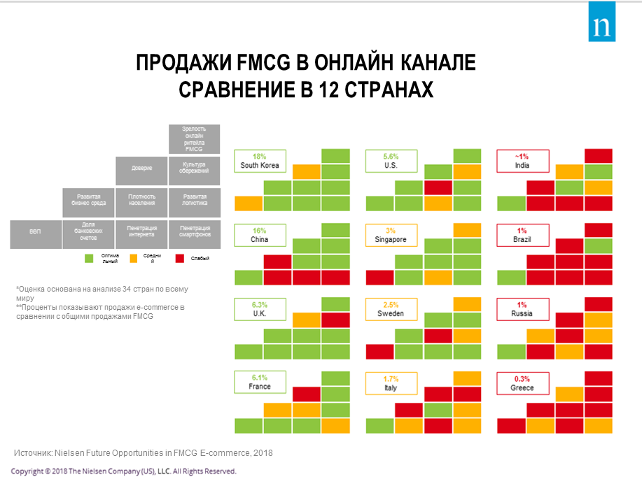 Вот краткое описание того, как онлайн-продажи FMCG сравниваются на нескольких глобальных рынках на основе 10 ключевых драйверов.