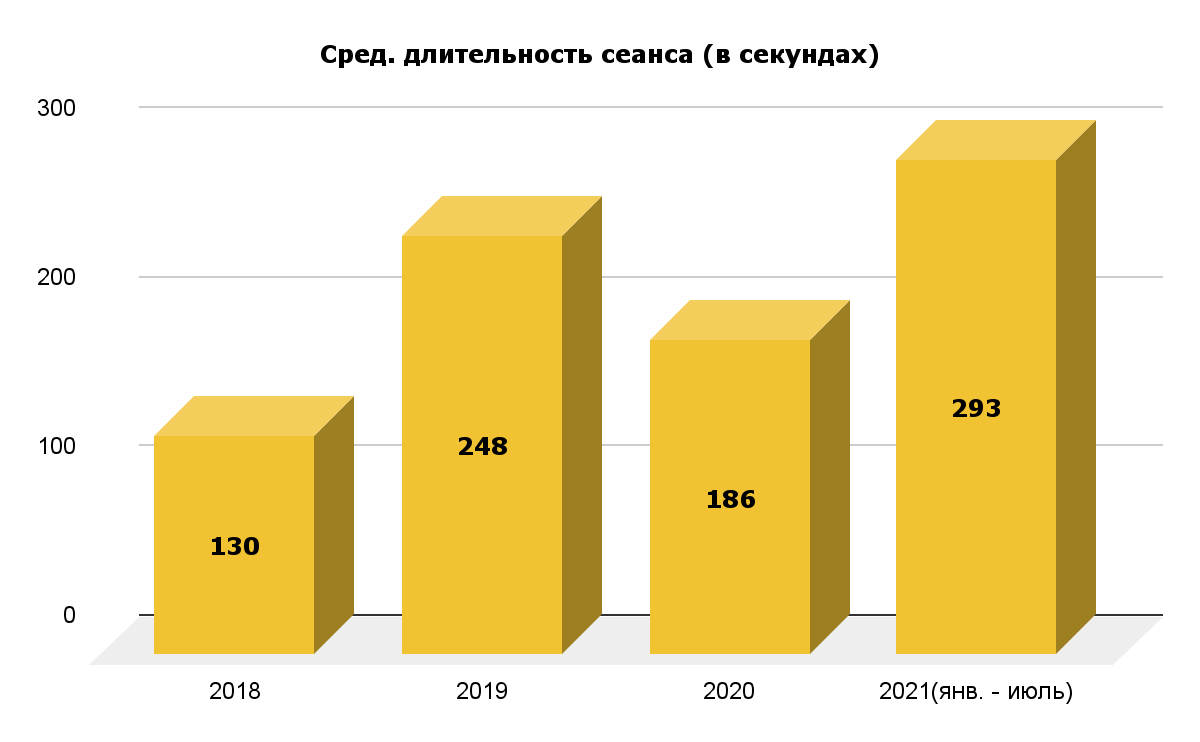 Также мы отслеживаем среднюю продолжительность пребывания пользователей на нашем сайте в секундах по каждому каналу трафика и оптимизируем все настройки при такой необходимости.