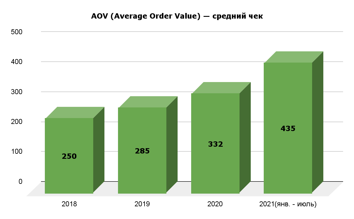 Также мы отслеживаем средний чек покупки, который позволяет нам узнать количество полученных и неполученных заказов, просмотреть работу нашего менеджера, а также оптимизировать рекламу.