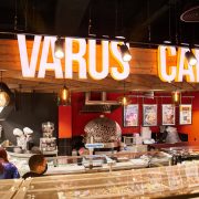Изюминка супермаркета – Varus Cafe. Там можно приобрести вкусную пиццу, многие виды которой представлены в меню. Хорошим дополнением к ней станут вкусные блюда из салата-бара. А кофе из Varus Cafe, который можно взять с собой, придаст настроение и согреет в холодную погоду.