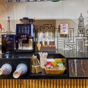 Ассортимент супермаркета закрывает основные потребности клиентов и при этом не перегружает их сложным выбором. Для пешеходного Подола с большим количеством офисных сотрудников ключевые опции – сделать быстрые покупки, купить готовые блюда, взять хот–доги и напитки с собой, а также перекусить и выпить чай, кофе или фреш прямо в магазине. Все это доступно в новом Varus To Go на ул. Константиновской, 2 А.