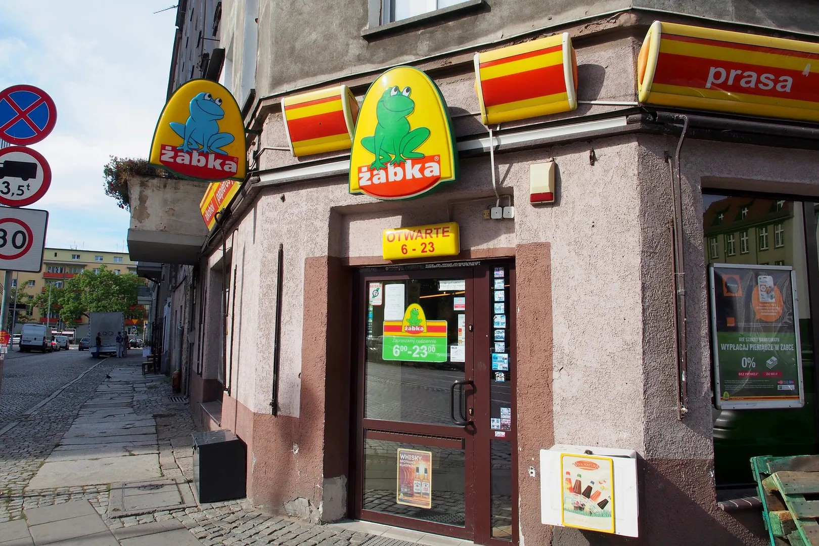 Владельцем сети был известный в стране предприниматель Мариуш Швитальский, перед тем как раз продавший свою дисконтную сеть Biedronka из более чем 200 магазинов португальской группе Jerónimo Martins. Магазины Żabka с изображением зеленой лягушки на желтом фоне торговали сначала “самым необходимым” ассортиментом из сигарет, напитков, сладостей, снеков и т.д. Чтобы жители соседних домов могли буквально в домашних тапочках докупить нужное.