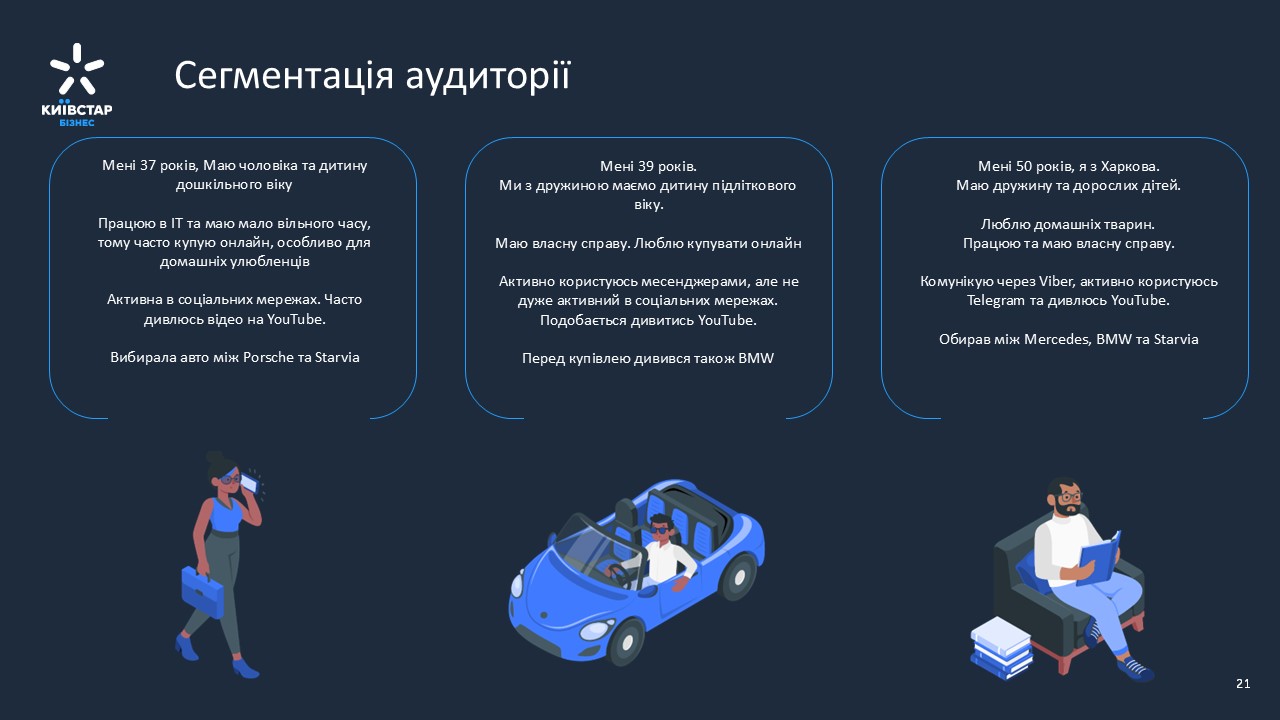 Автомобильный бренд, условно Starvia (название вымышленное – прим. ред.) хотел понять, кто является его существующим покупателем, уже купившим кроссовер премиум-сегмента. А также понять, как и где общаться с потенциальной аудиторией.