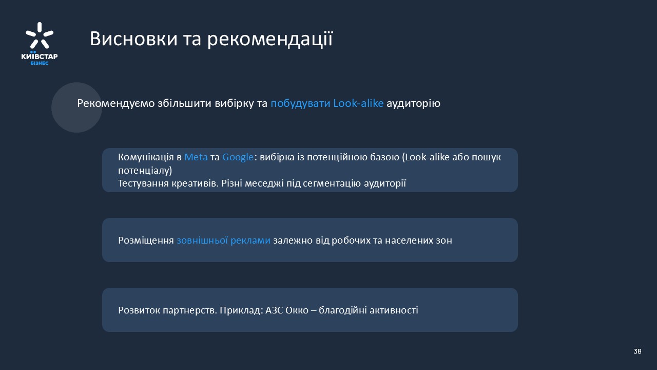 Открытием было то, что наибольшая часть этих клиентов пользуется АЗК ОККО. Это определенный инсайт, где можно дополнительно общаться с этой аудиторией. Также показали, какие они посещают ТРЦ и кинотеатры.