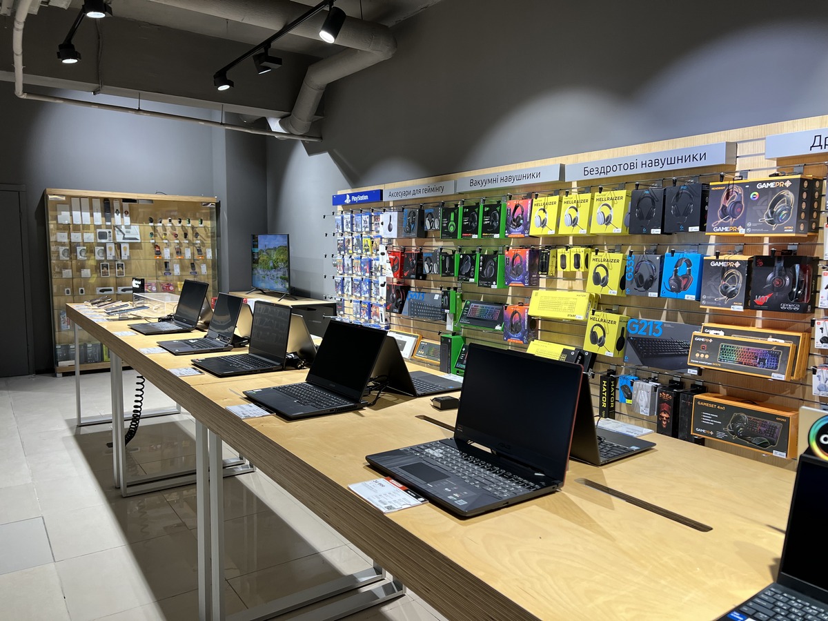 В помещении общей площадью 226 кв. м покупателей ждет теплая атмосфера и внимательные и профессиональные консультанты. Из ассортимента – смартфоны, ноутбуки и планшеты, наушники, портативные колонки, роботы-пылесосы, аксессуары для гаджетов и игровые приставки. Все можно потестить перед покупкой и получить высококвалифицированную консультацию от продавцов.