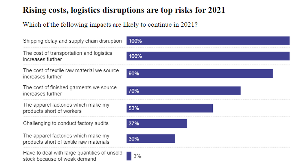 Chart: Edwin Lopez / Supply Chain Dive Source: 2021 Fashion Industry Benchmarking Study Get the data Created with Datawrapper