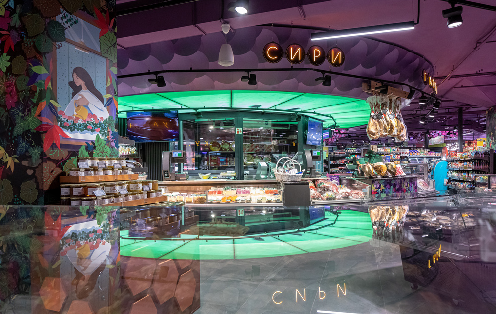 Площадь этого магазина – 800 кв. м. Здесь есть гриль, подают блюда из печи и раздается музыка для расслабленного настроения и шопинга.
