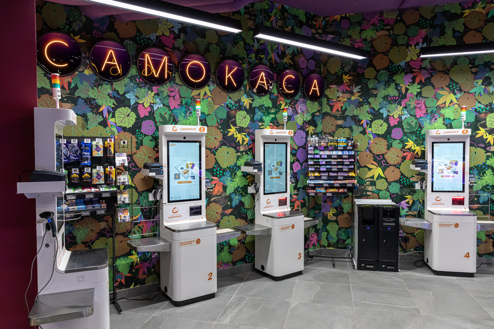 В магазине используются электронные ценники, что позволяет сократить расход бумаги и оперативно обновлять цены на товары. Чтобы ускорить процесс покупок, работает восемь традиционных касс и шесть самокасс.