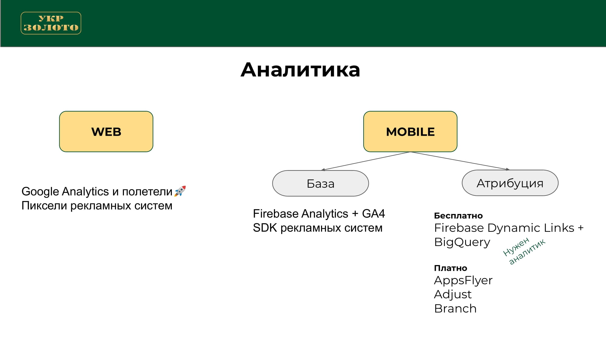 Самой большой проблемой в мобильных приложениях остается аналитика, ведь на веб-платформе устанавливается Google Analytics, настраиваются несколько целей и можно запускать рекламу. В мобильных приложениях все гораздо сложнее: здесь есть продуктовая и маркетинговая аналитика, поэтому возникает потребность в привлечении дополнительного разработчика и специалиста для анализа конверсии.