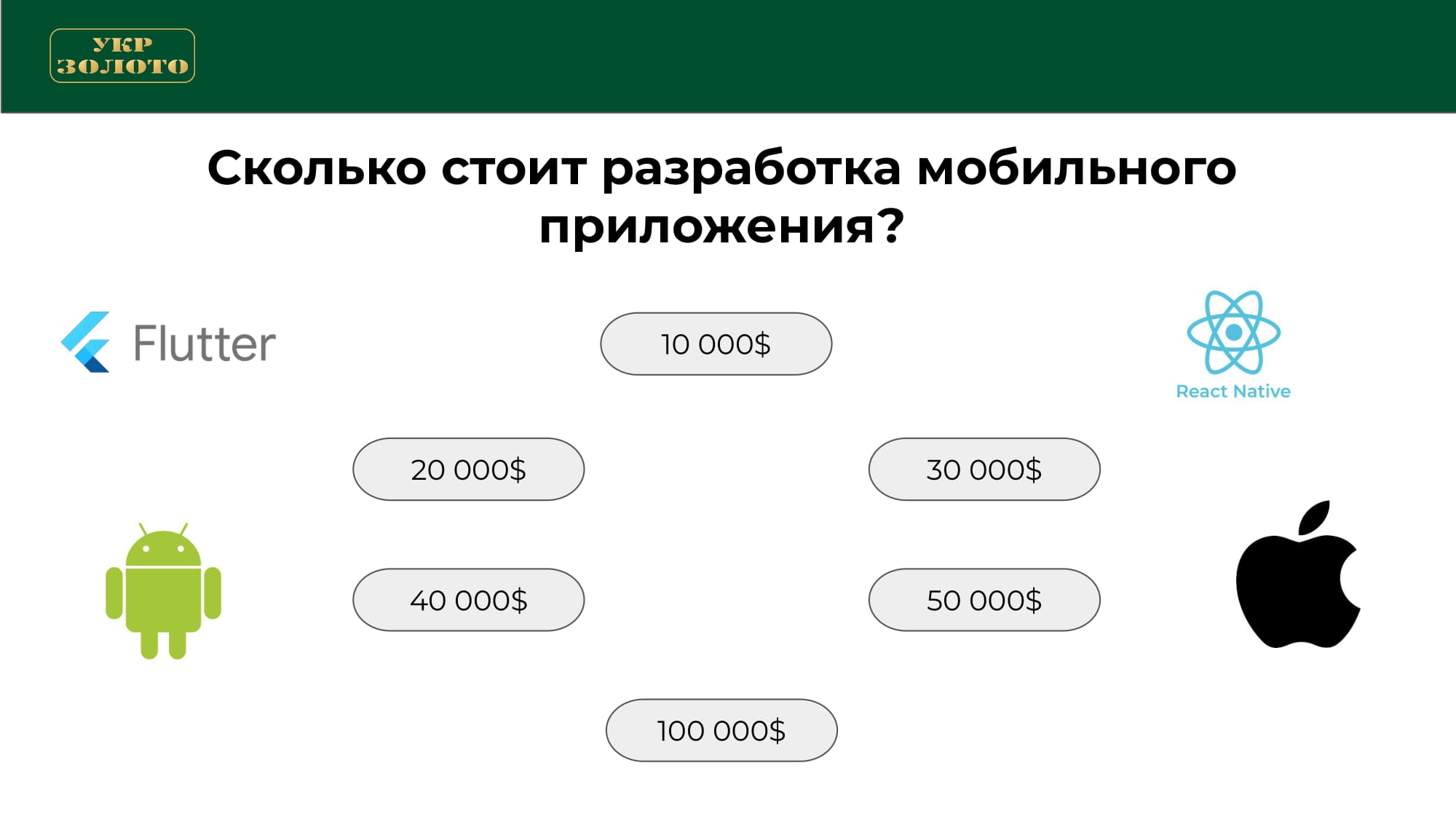 Стоимость разработки мобильного приложения колеблется от $10 000 до 100 000 – в зависимости от выбора технологий.
