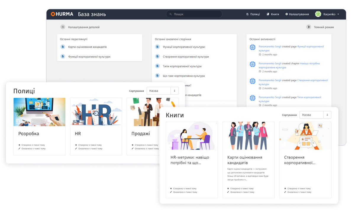 – HURMA является первой украинской HRIS системой и остается лидером отрасли. Систему выделяет широкий функционал и безопасность данных: HURMA подойдет как для HR, так и для рекрутинг-задач. В системе доступна широкая аналитика, чеклисты под разные объемные задачи и возможность создавать и дополнять обширную базу данных. Кроме этого HURMA имеет интеграции со всеми популярными украинскими job-порталами, что позволяет размещать вакансии в считанные секунды, и парсинг резюме, упрощающий сбор данных о кандидатах. Также HURMA имеет базу знаний, которая наиболее функциональна на рынке. Наши клиенты используют этот функционал для безопасного хранения знаний компании и обучения сотрудников, что значительно повышает эффективность обучения и экономит деньги компаниям.