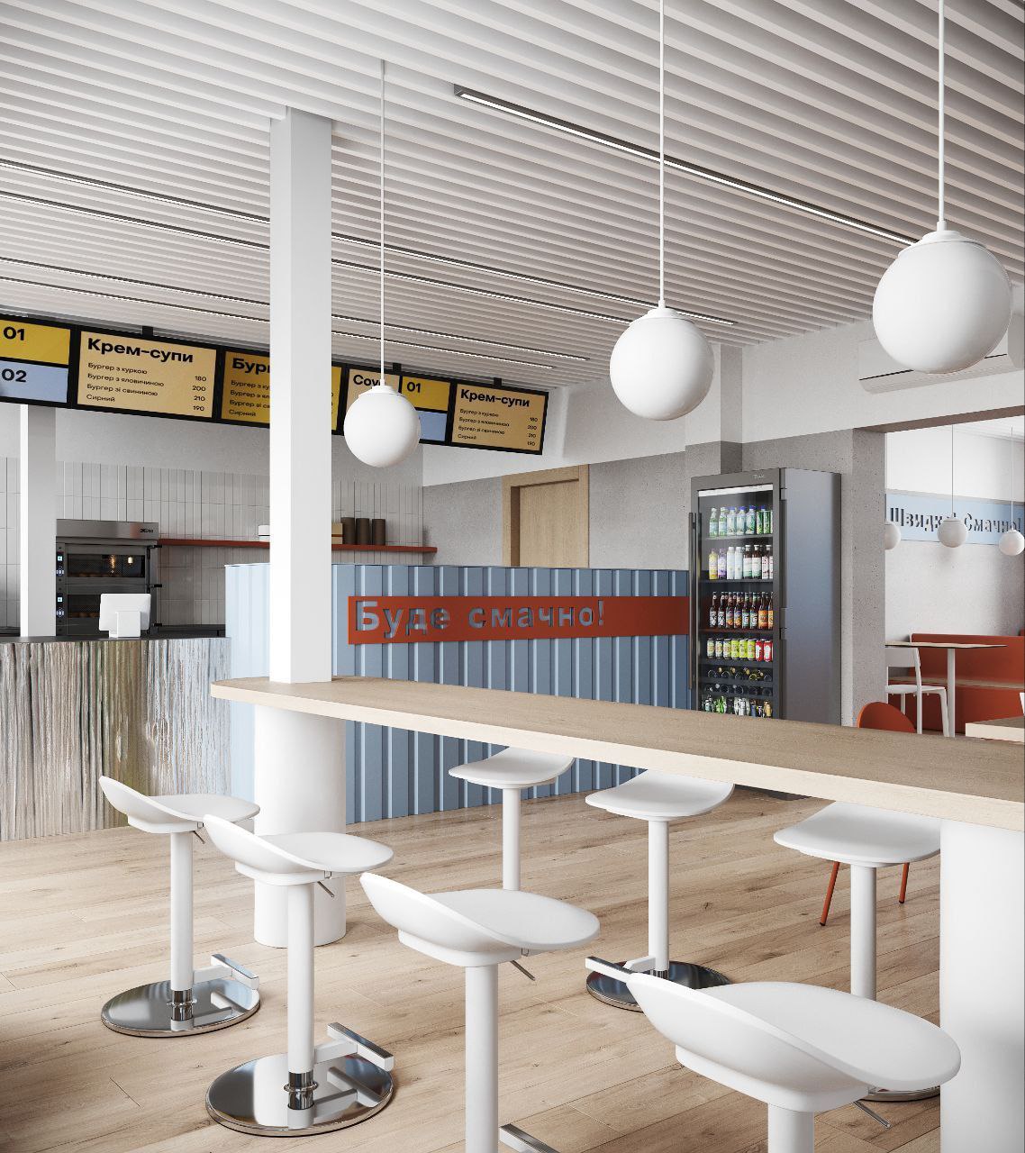 Планировка заведения тоже будет максимально функциональна: без полноценной кухни, отдельно – барная стойка, место, где приготовляются блюда и столики.