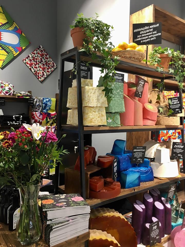 В торговом пространстве нового магазина представлен полный ассортимент бренда в Украине, включая новую коллекцию парфюмерии, изготовленную, как и все остальное в сети, вручную на основе натуральных эфирных масел, свежих фруктов и овощей, целебных трав и растений. Дизайн магазина выполнен в новом стиле, который, среди прочего, включает в себя мебель из дерева, бывшего в употреблении. Новая торговая точка станет по счету 14-й для украинской сети.