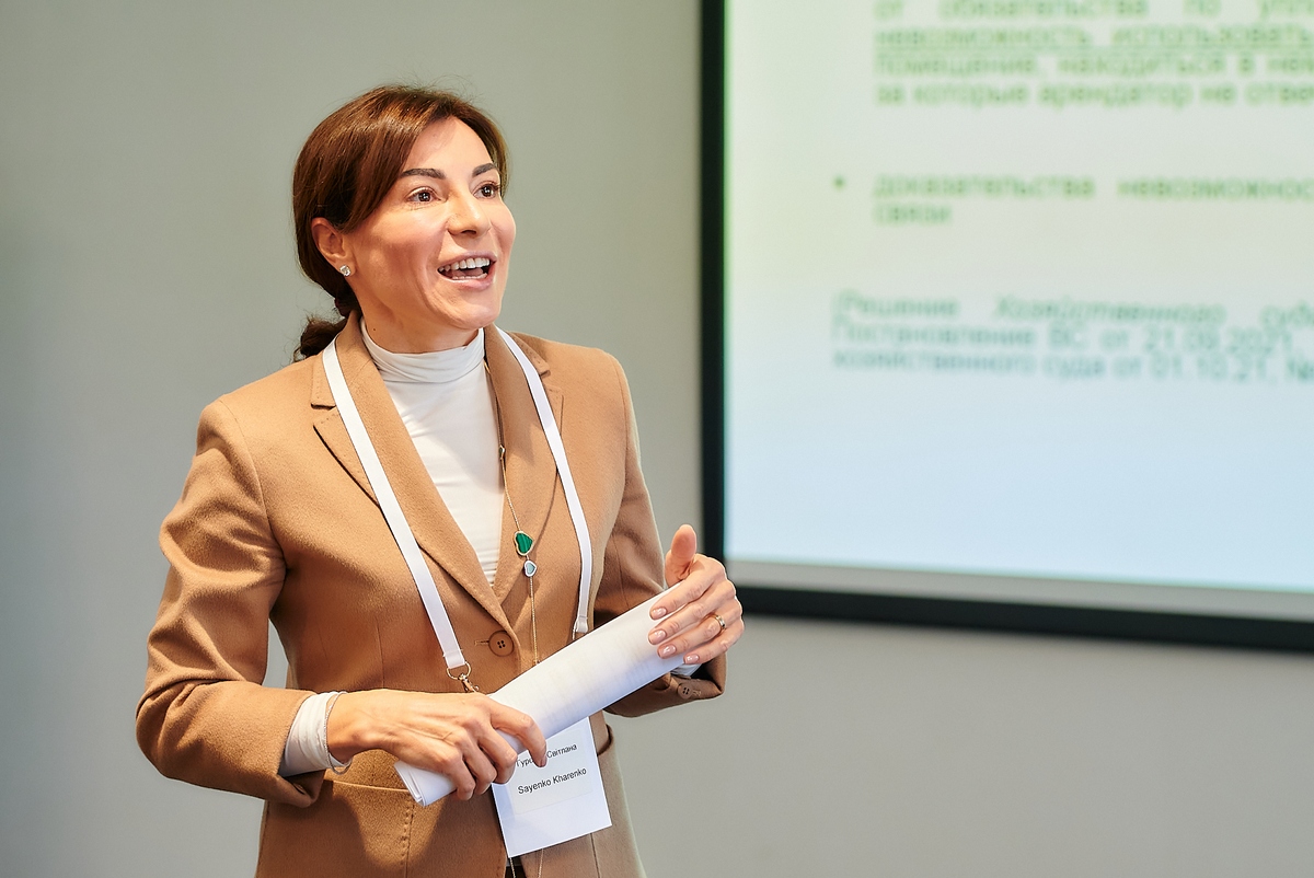 Первым спикером деловой программы стала старший юрист Sayenko Kharenko Анастасия Бидах. Она рассказала о законодательных изменениях, касающихся недвижимости. В частности, юрист обратила внимание на разные редакции ст. 120 Земельного кодекса Украины (о переходе права собственности на недвижимость одновременно с правом собственности на землю под объектом), одна из которых будет действовать всего два месяца: с 28 октября до 31 декабря 2021 года. А также особое внимание уделила проблематике составления предварительных договоров аренды и заключению договоров аренды: на что обратить внимание, чтобы снизить возможные риски.