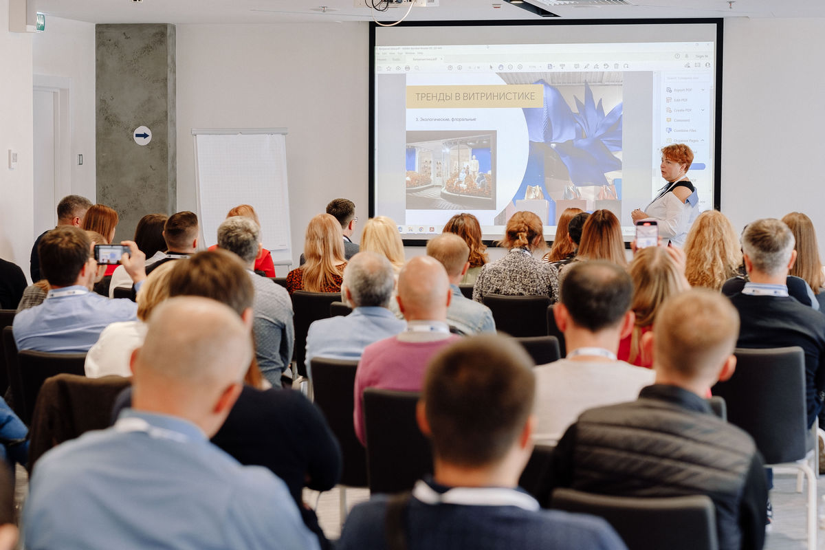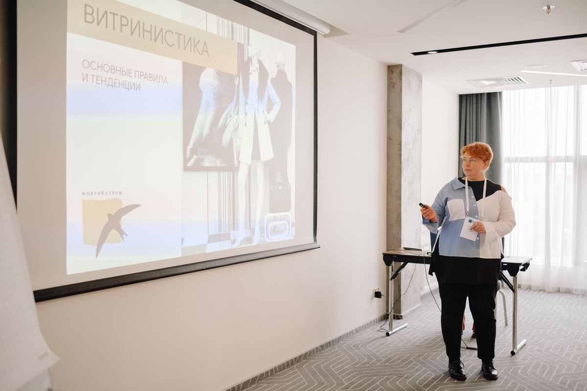 После кофе-паузы гости мероприятия имели возможность познакомиться с особенностями витринистики и актуальными тенденциями в оформлении витрин. Своими знаниями по этому вопросу делилась директор ООО «Желтый стриж» (комплексные решения по декорированию пространства) Ольга Кужавски.