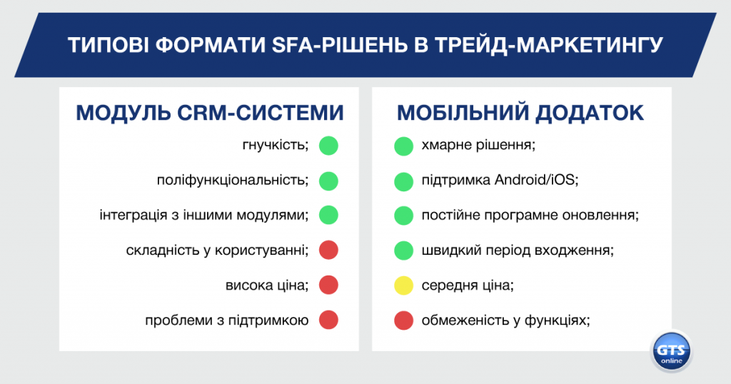 Давайте взглянем на то, что нам предлагает рынок. SFA-решения для контроля трейд-маркетинговых активностей представлены в основном в двух основных вариантах: