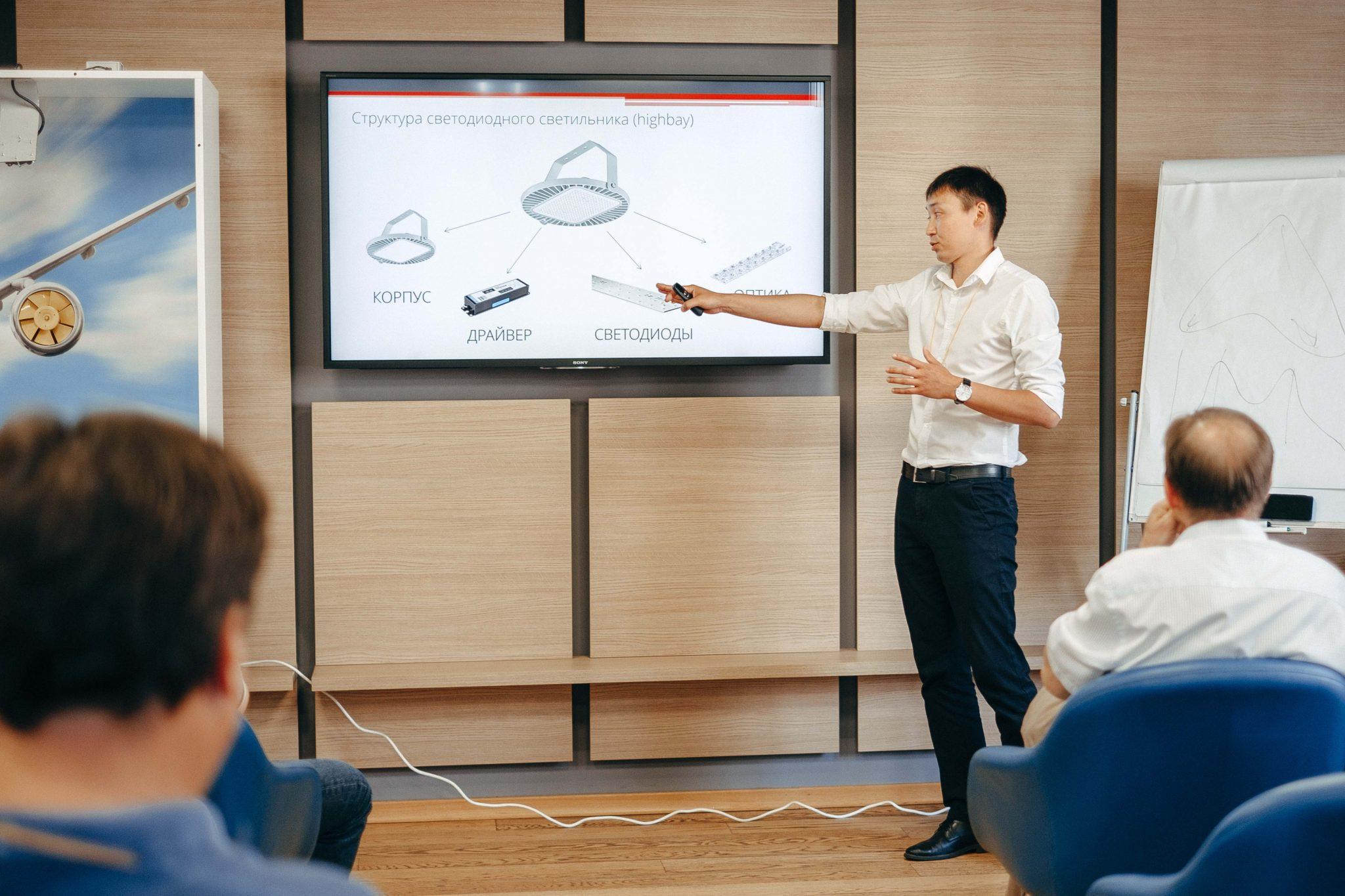 После непродолжительного кофе-брейка выступил Зиновий Монастырский, глава совета директоров ГК «Свитлотек», а также снова слово взял Дуйшен Эркимбаев. Первый из них в деталях рассказал о светодиодах, второй – дополнил его, детальнее рассмотрев светодиодные светильники.