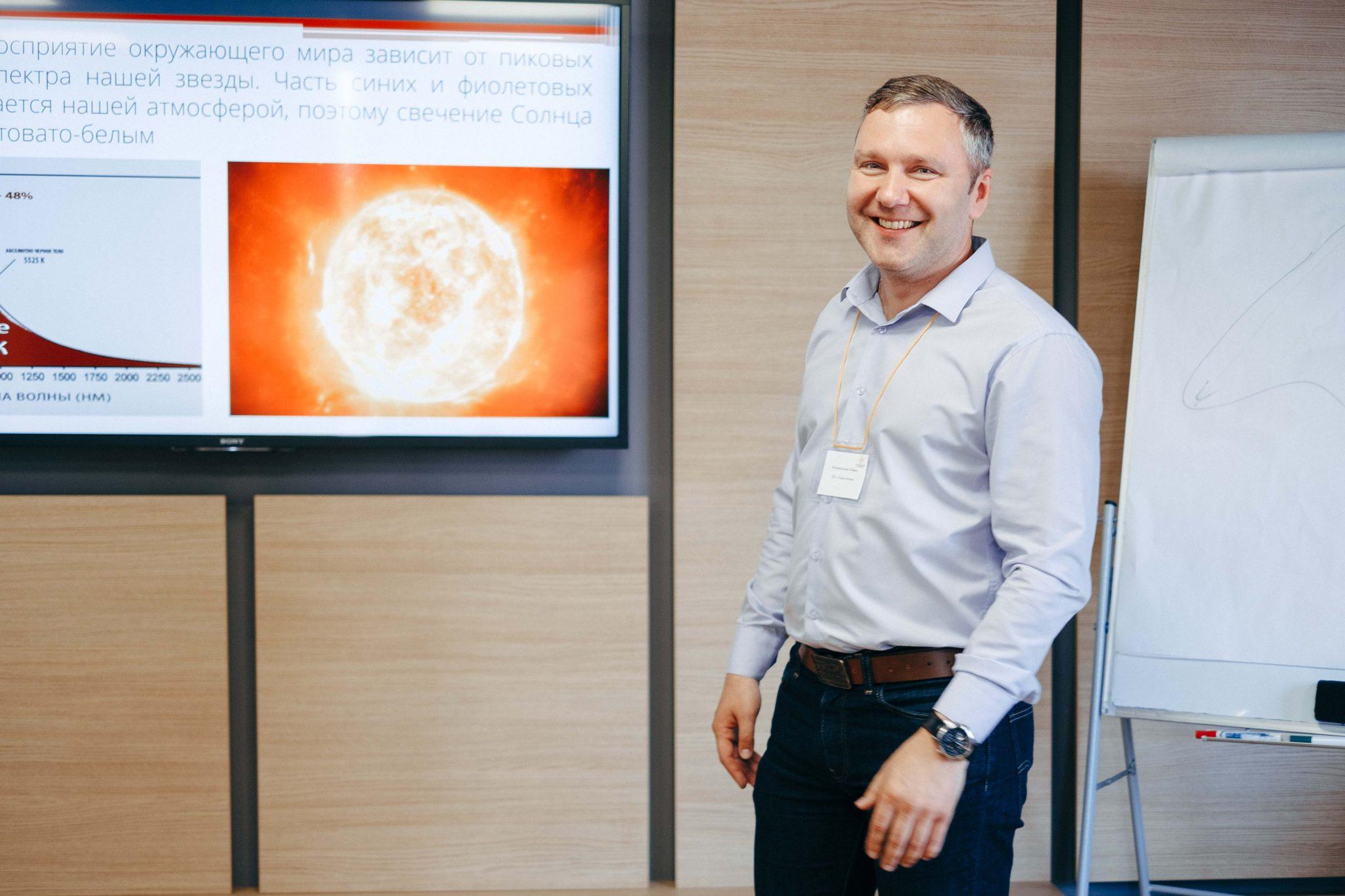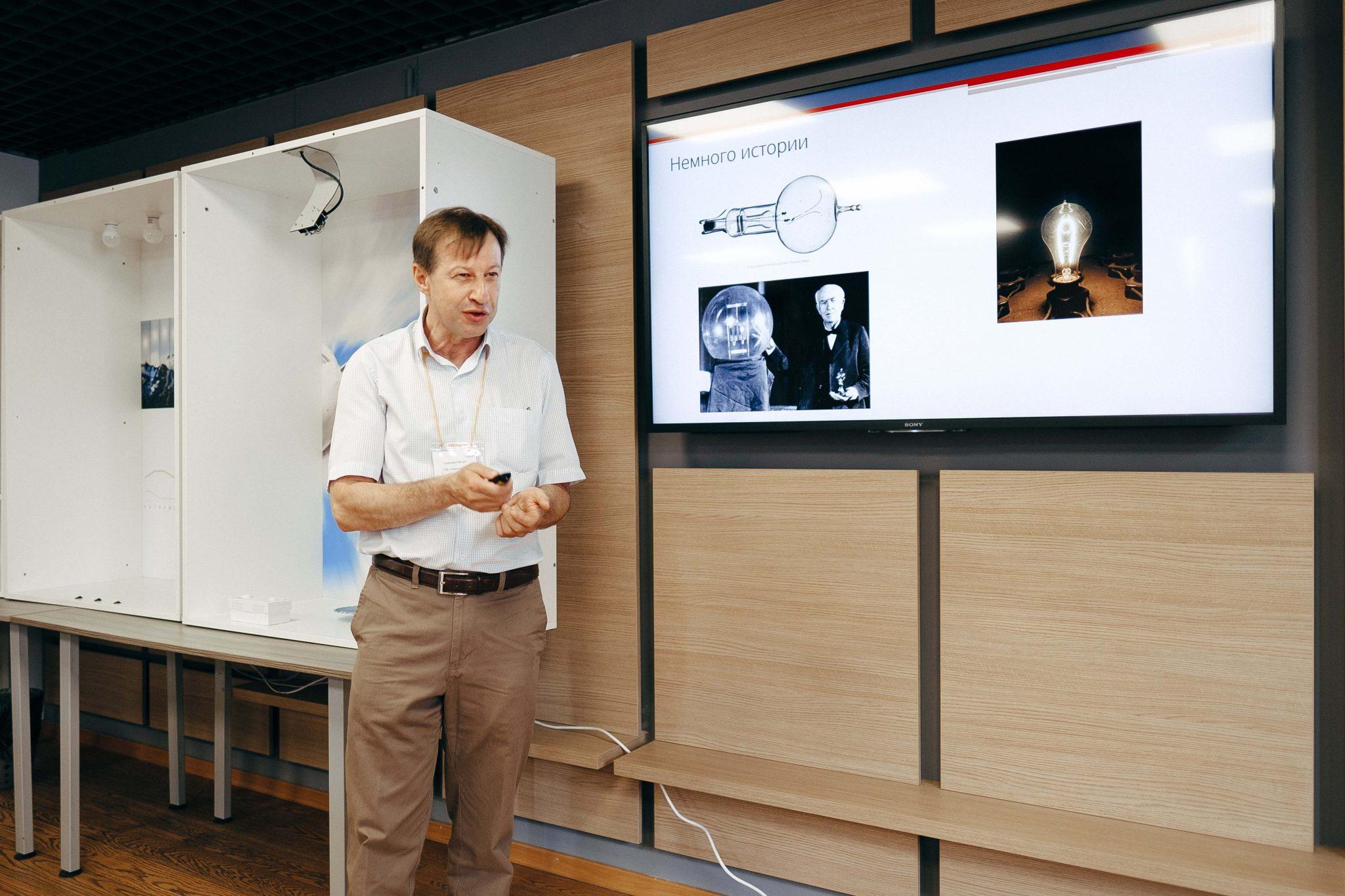 Следом за ним слово взял Игорь Савченко, бизнес-девелопмент менеджер ГК «Свитлотек». Ключевой темой его выступления стали азы светотехники. Также он поделился основами светотехники и принципами, которые нужно знать о свете, чтобы правильно подобрать источники света.