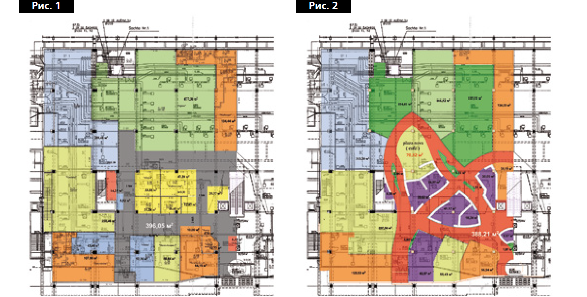 На рис. 2 план того же центра с «освобожденным» от помех потоку покупателей. И не только не уменьшается арендуемая квадратура, наоборот, возникают новые центры притяжения, за которые арендующие готовы платить больше.