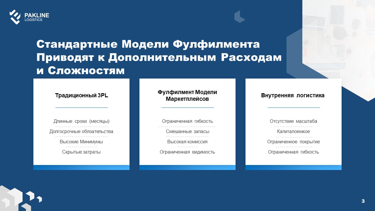 В то же время у профильных компаний – логистических операторов, таких, например, как Pakline Logistics, накоплен большой опыт в оптимизации затрат и транспортных потоков, организации связанных бизнес-процессов. Например, как и где лучше хранить товар, каким способом, как быстро нужно его доставлять клиенту. Работая с разными сферами торговли, 3PL-оператор видит потребности клиентов и может учитывать их в своей работе. Тем самым помогая ритейлеру оставаться гибким и эффективным в условиях быстро меняющейся среды электронной коммерции, сохраняя конкурентоспособность цепочек поставок.