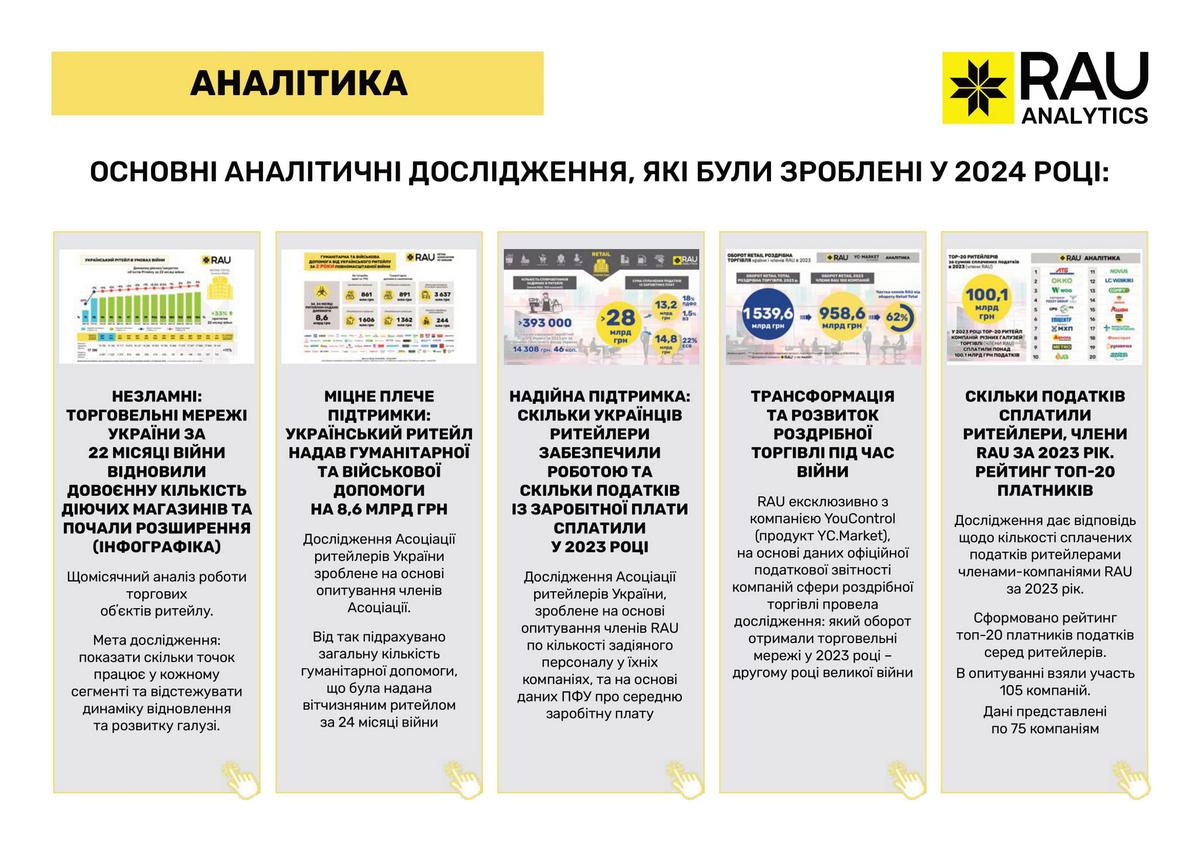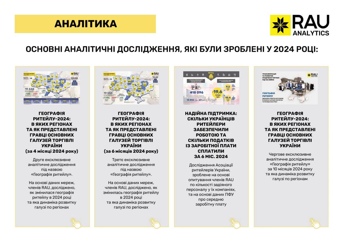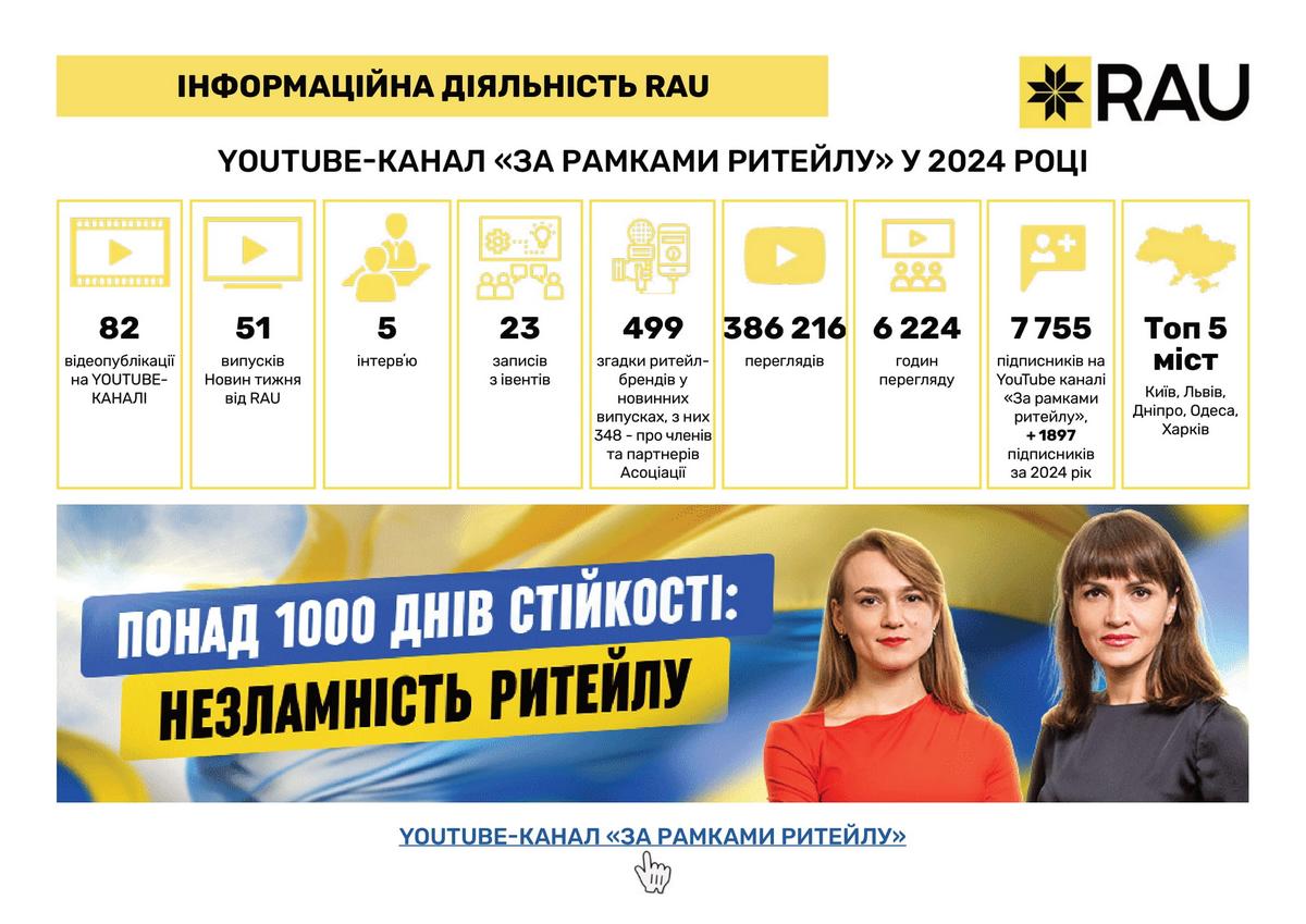 О работе Ассоциации ритейлеров Украины в 2024 году — подробнее в отчете. Загрузить отчет можно по ссылке.