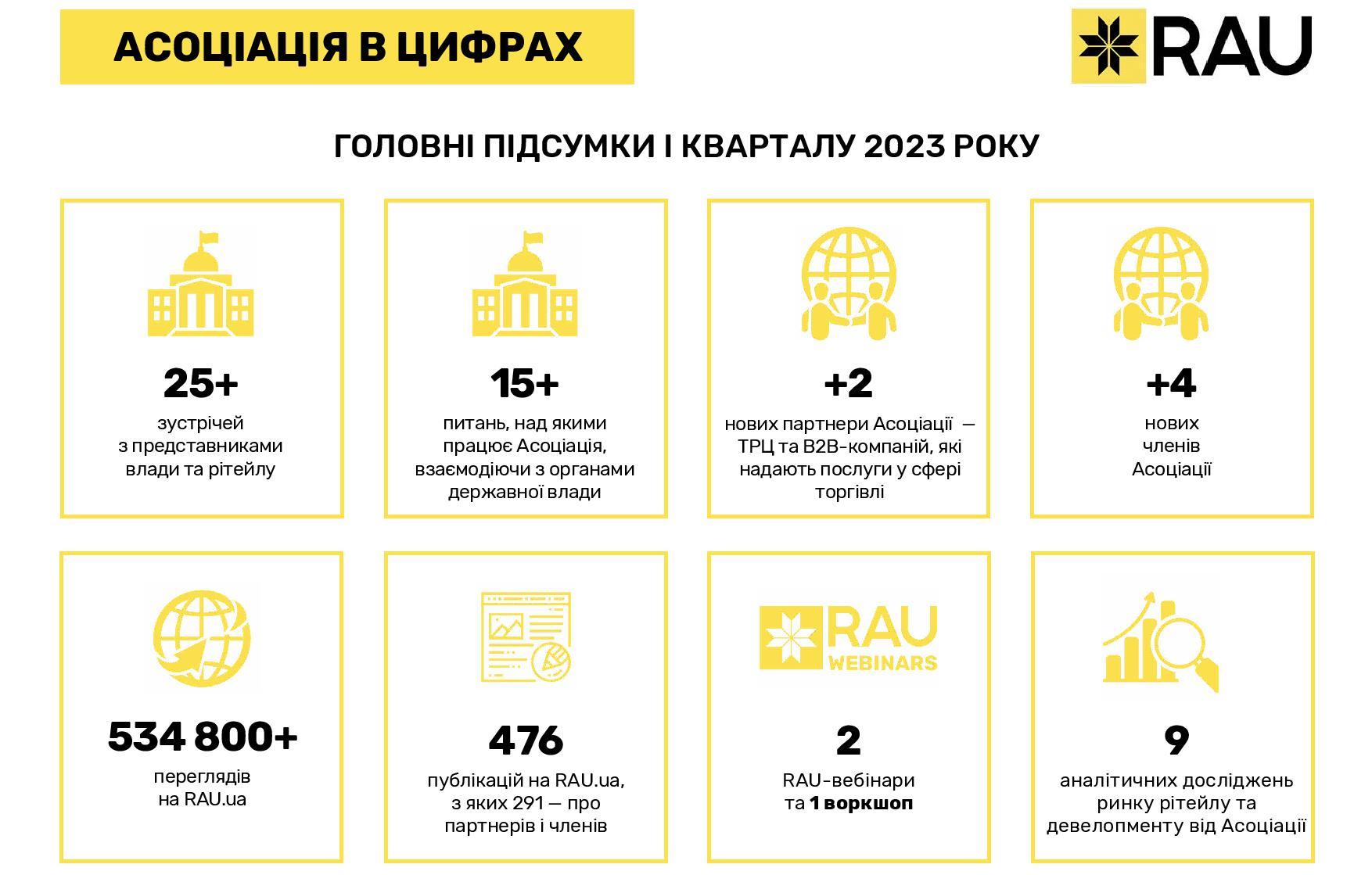 Итоги работы Ассоциации ритейлеров Украины в I квартале 2023 года в цифрах и графиках: какие члены и партнеры присоединились к RAU, что было сделано и какие результаты получены.