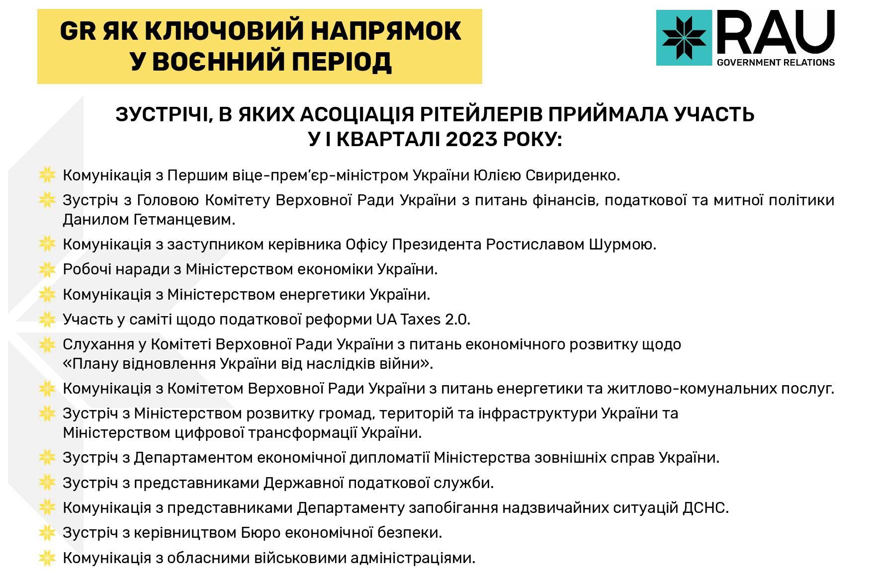 Отчет о деятельности Ассоциации ритейлеров Украины за I квартал 2023 года
