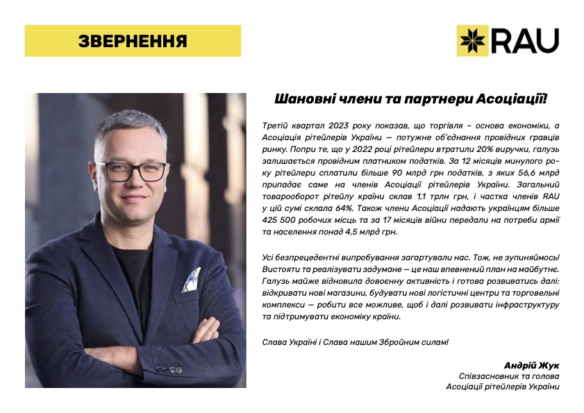 III квартал 2023 года показал, что торговля – основа экономики, а Ассоциация ритейлеров Украины – мощное объединение ведущих игроков рынка.