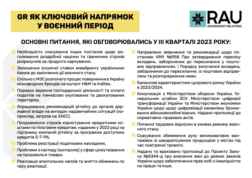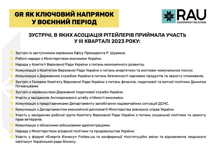 Отчет о деятельности Ассоциации ритейлеров Украины за IIІ квартал 2023 года